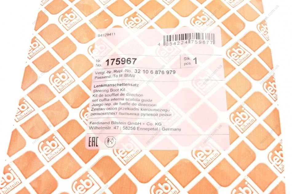 Пильник рейки рульової BMW 5 (G30/F90)/7 (G11/G12) 17- (к-кт) B47/B48/B57/B58/N63/S63 FEBI BILSTEIN 175967