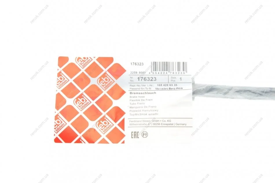 Шланг гальмівний (передній) MB A-class (W168) 98-04/E-class (W210) 96-03 (310mm) FEBI BILSTEIN 176323 (1684280335, 2104280535, A1684280335)