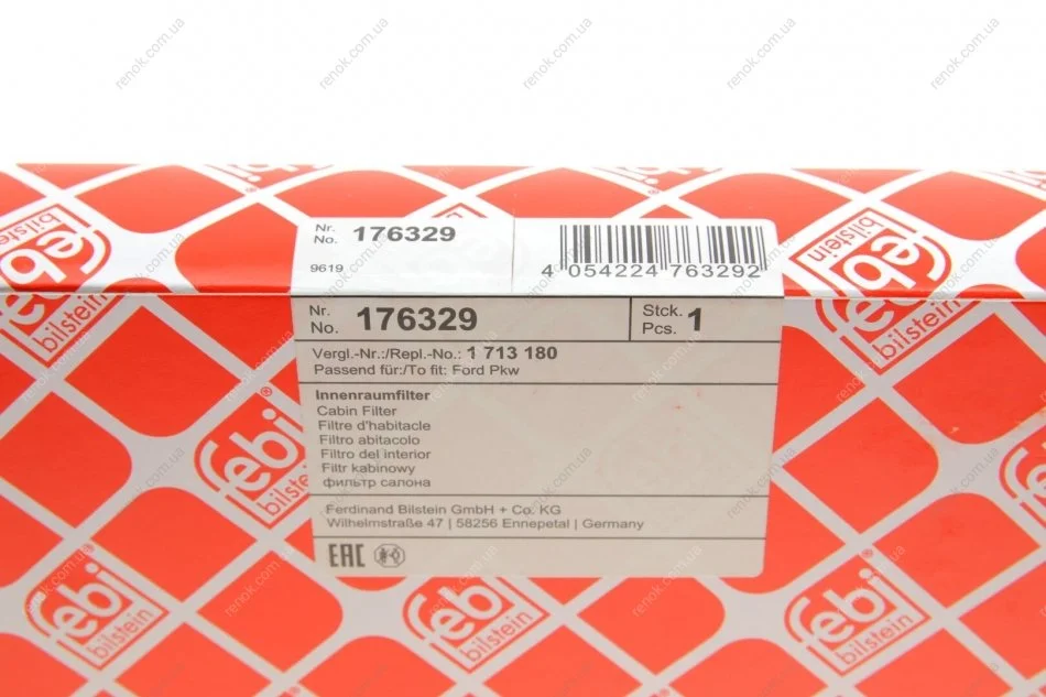 Змінний фільтруючий елемент повітряного фільтра салону FEBI BILSTEIN 176329