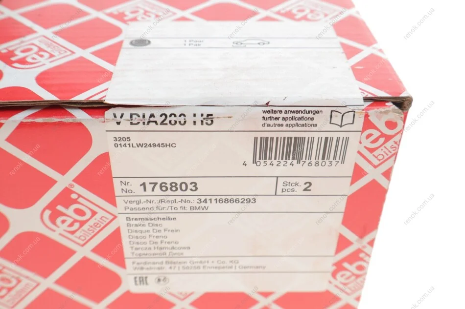 Диск гальмівний(к-т) FEBI BILSTEIN 176803