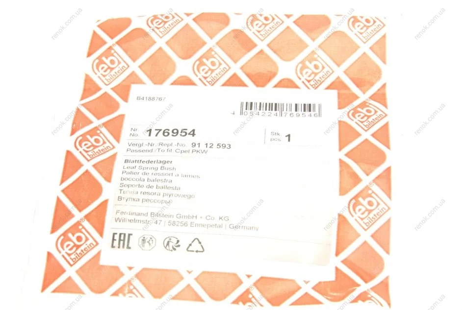 Сайлентблок ресори (задній/передній) Renault Master 98- FEBI BILSTEIN 176954 (3512900QAA, 3512900QAB, 7700302151)