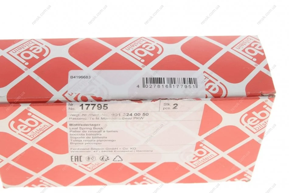 Сайлентблок ресори (задньої/серьга) MB Sprinter 208-316/VW LT 96-06 FEBI BILSTEIN 17795 (2D0511181, A9013240050, 05118731AA)