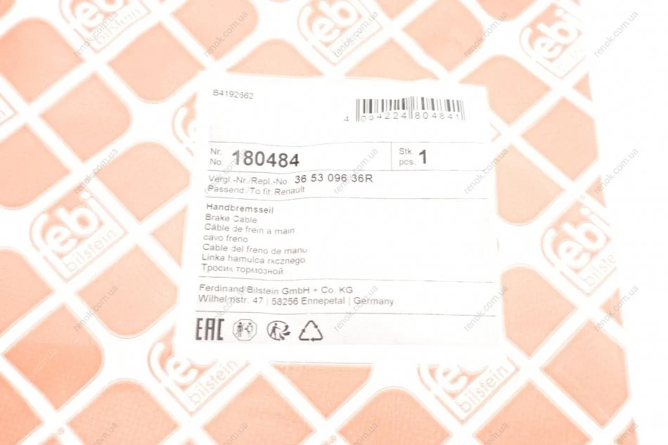 Трос ручних гальм FEBI BILSTEIN 180484 (365309636R)
