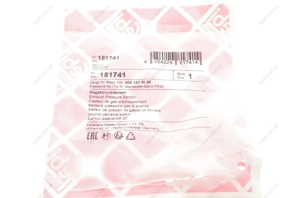 Датчик тиску відпрацьованих газів FEBI BILSTEIN 181741 (0041531428, 0041539828, 0061536028)