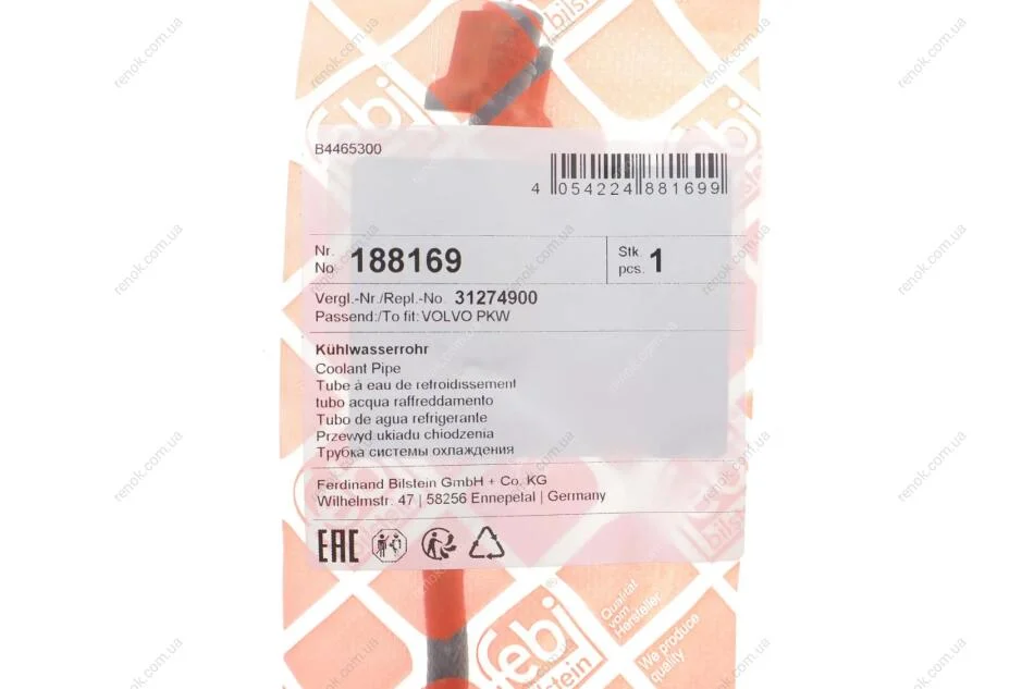 Патрубок системи охолодження FEBI BILSTEIN 188169