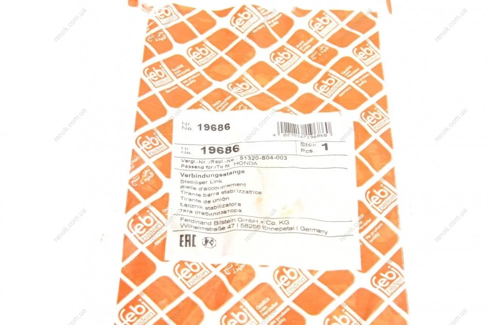 Тяга стабілізатора (переднього) Honda Civic VI/ CR-V 95-01 FEBI BILSTEIN 19686 (51320S04003)