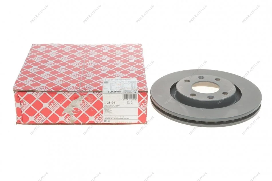 Диск гальмівний (передній) Citroen Berlingo/Peugeot Partner 96- (266x22) FEBI BILSTEIN 21120 (1647868480, 4246W1, 4246W7)