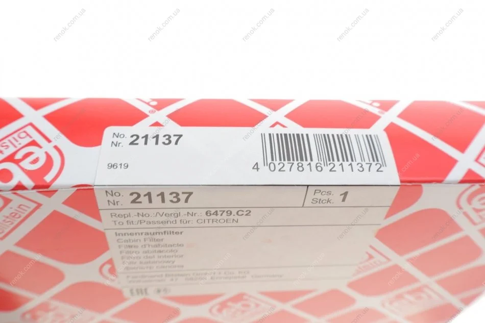 Змінний фільтруючий елемент повітряного фільтра салону FEBI BILSTEIN 21137 (6447KK, 6447NT, 6447TJ)
