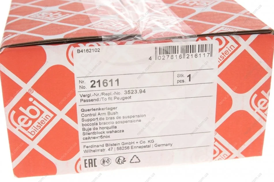 Сайлентблок важеля (переднього/ззаду) Fiat Ducato/Peugeot Boxer/Citroen Jumper 94-06 FEBI BILSTEIN 21611 (1308694080, 3523AP, 352394)
