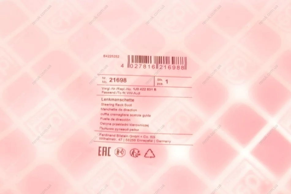 Пильник рейки рульової Audi A3/VW Golf IV 1.4-3.2 96-07 FEBI BILSTEIN 21698