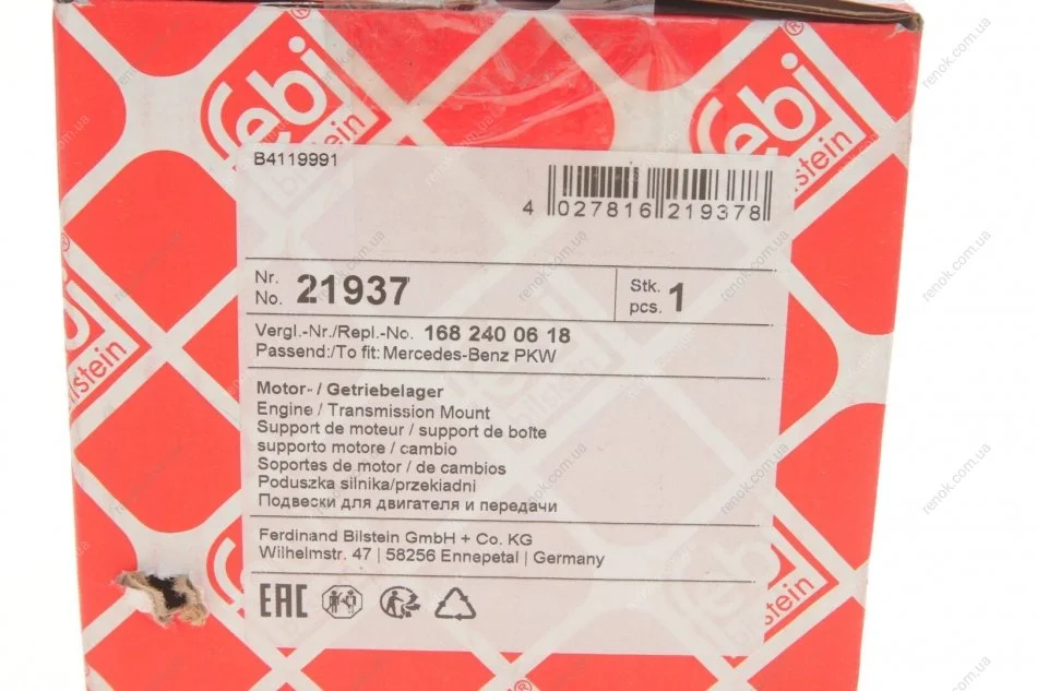 Подушка двигуна (задня) MB A-class (W168) 1.4/1.6/1.7CDI/1.9/2.1 FEBI BILSTEIN 21937 (a1682401218, A1682400618, 1682401218)
