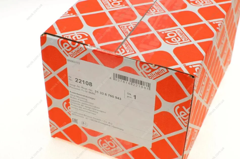 Подушка амортизатора (переднього) + підшипник BMW 3 (E46/E90)/5 (E60) 00-12 FEBI BILSTEIN 22108 (31336769582, 31336760943, 31352241448)