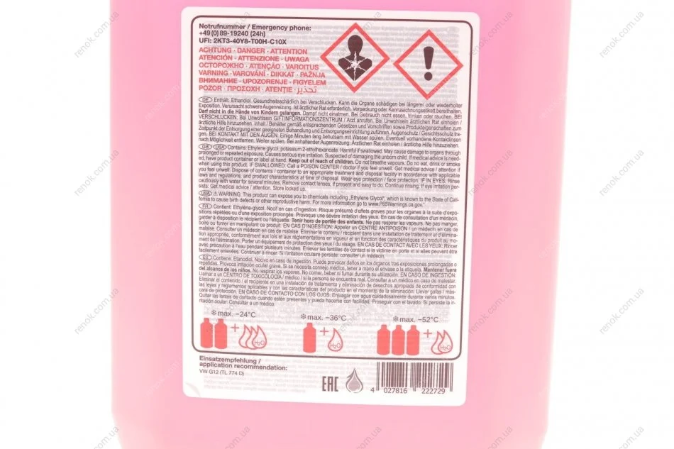 Специфікація: SAE J1034, ASTM D3306, VW TL 774-D, G12