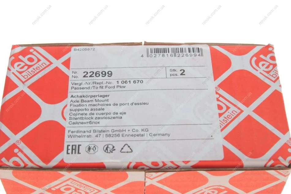 Сайлентблок важеля (заднього/спереду) Ford Focus/C-MAX/Kuga/Volvo C30/C70 II/S40 II 98- (продол.) FEBI BILSTEIN 22699 (1061670, 98AG5K896AB)
