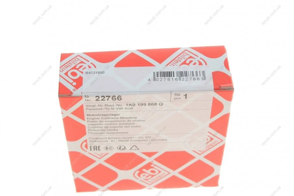 Подушка двигуна (верхня) VW Caddy 03- (з різьбою) FEBI BILSTEIN 22766 (1K0199868A, 1K0199868C, 3C0199868C)