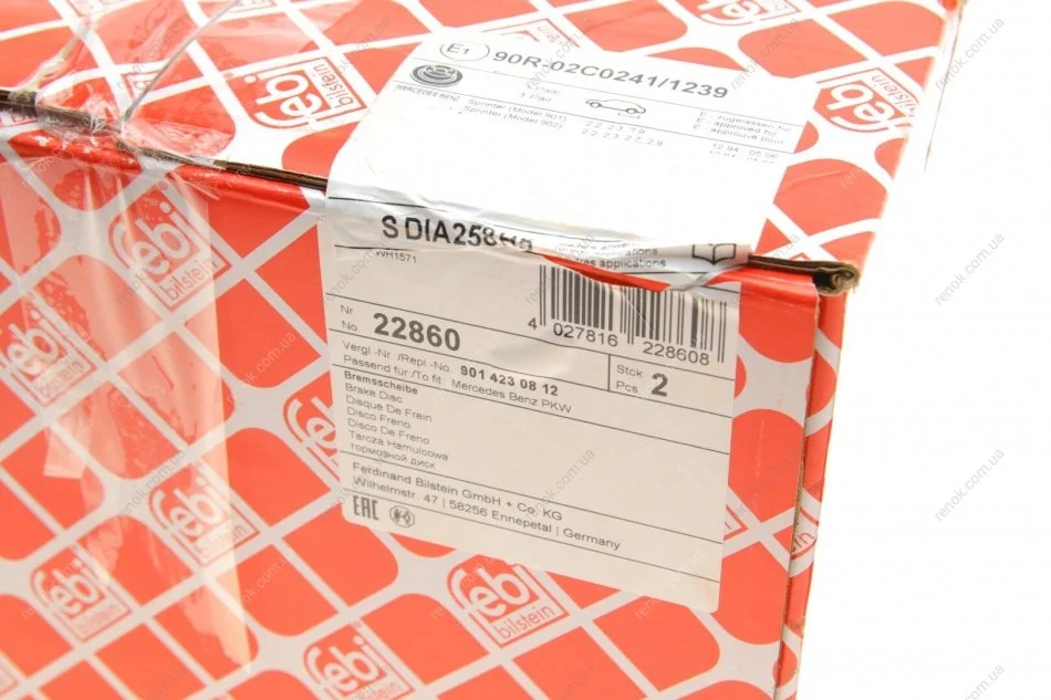 Диск гальмівний (задній) MB Sprinter 208-216 96-06 (258x12) FEBI BILSTEIN 22860 (9014230812, A9014230812)