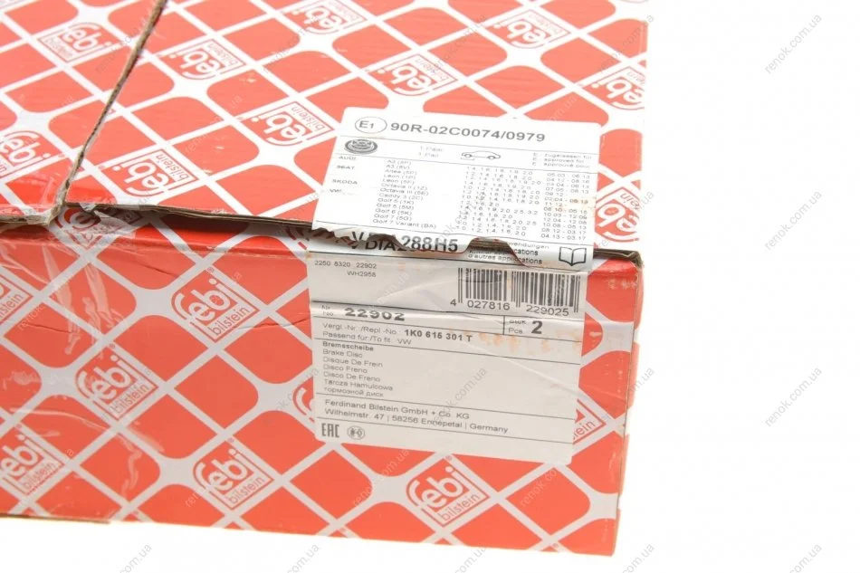Диск гальмівний (передній) VW Caddy III 03- (288x25) FEBI BILSTEIN 22902 (jzw615301j, 5q0615301h, 5c0615301d)