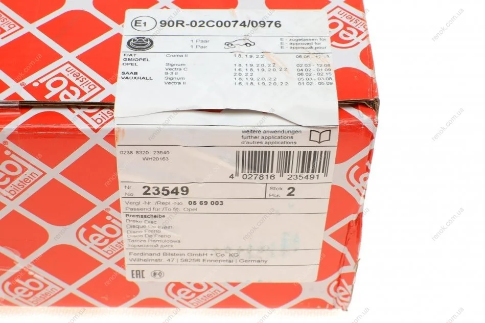 Перевірочне значення: ECE R90 APPROVED