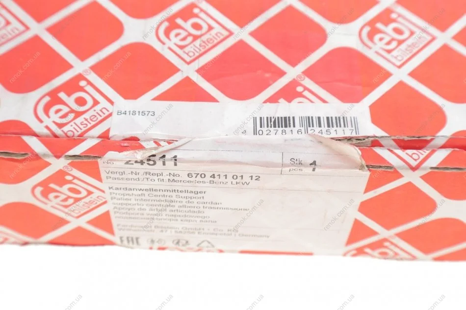 Підшипник підвісний MB Vario 2.9TDI (d=44.5mm) FEBI BILSTEIN 24511 (6704110112, A6704110112)