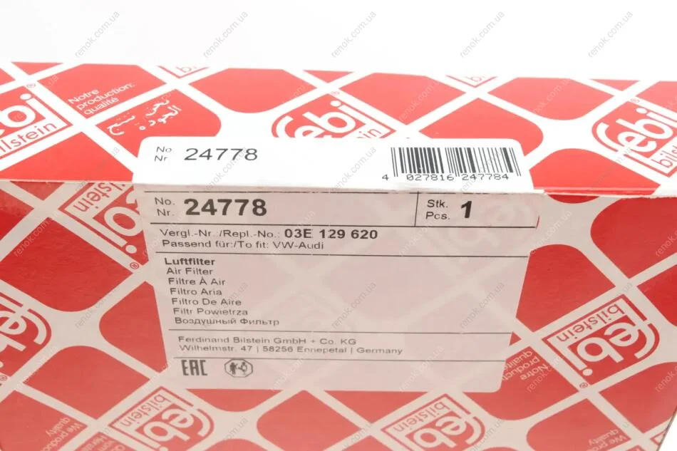 Фільтр повітряний Skoda Fabia 99-08/Roomster 1.2MPI 06-15/VW Polo 1.2 01-09 FEBI BILSTEIN 24778 (3E129620)