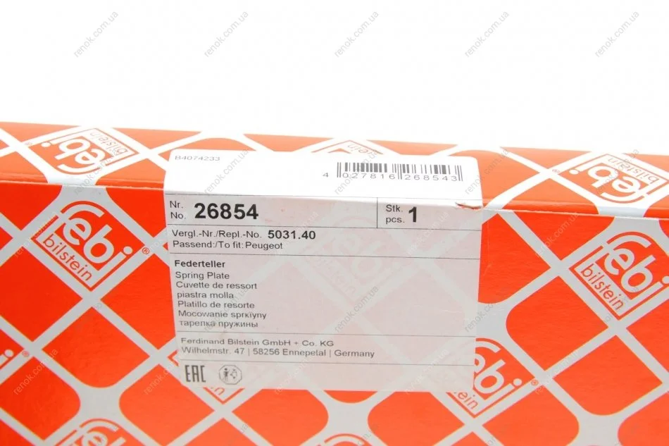 Тарілка пружини Fiat Ducato/Peugeot Boxer 94- FEBI BILSTEIN 26854 (1307628080, 503140)