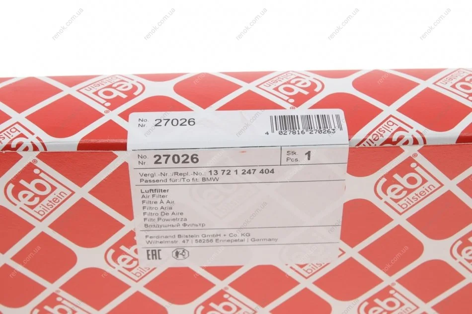 Фільтр повітряний BMW 3 (E36) 1.6/1.8/1.9 -03 FEBI BILSTEIN 27026 (13721247405, 13721247404)