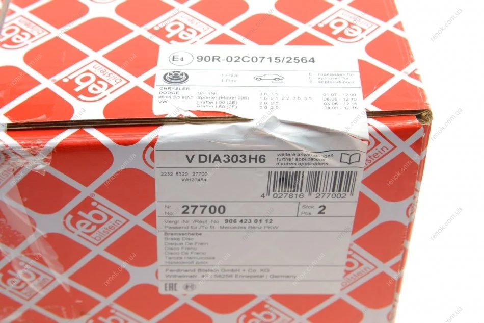 Диск гальмівний (задній) MB Sprinter 508-519 06- (303x28) FEBI BILSTEIN 27700 (9074230100, A9074230100, 907423010007)