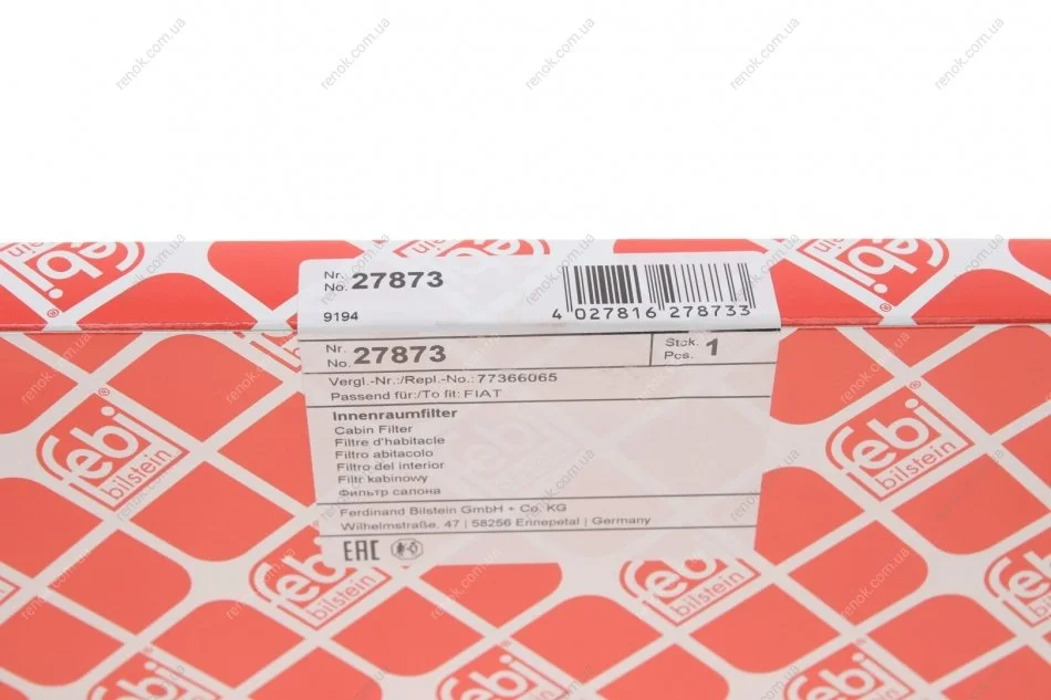 Фільтр салону Fiat Panda 1.1-1.4 JTD 95-/Ford Ka 1.2/1.3 TDCi 08-16 FEBI BILSTEIN 27873 (1557375, 46723321, 77366065)
