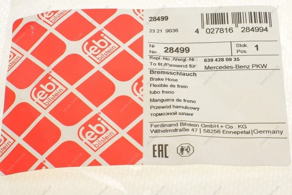 Шланг гальмівний (задній) MB Vito (W639) 03-15 (350mm) FEBI BILSTEIN 28499 (a6394280935, A6394280435, 6394280435)