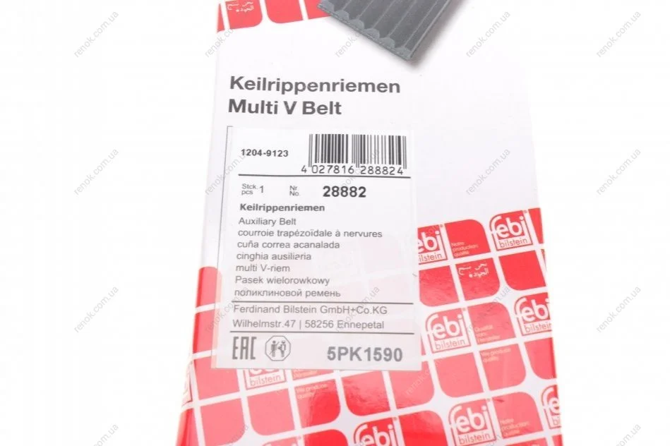 Ремінь генератора Audi A4/ A6/ VW Passat 1.9 TDI 95-01 (5PK1590) FEBI BILSTEIN 28882 (028903137AJ, 028903137AR, 0K55315987)