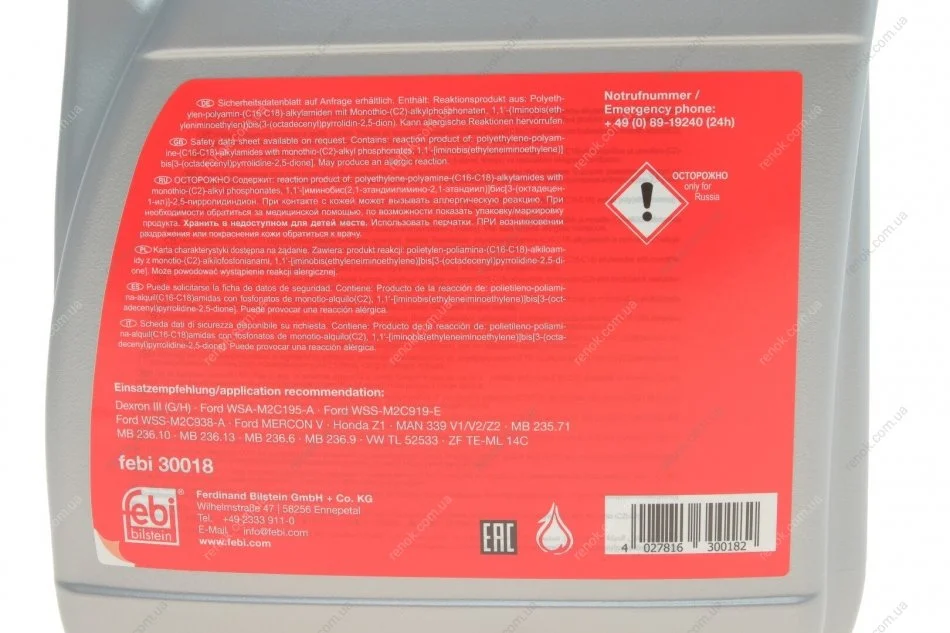 Олива АКПП (5L) (MB Sprinter (906)/MB236.10) (червоне) FEBI BILSTEIN 30018 (a001989210310, A0019892103, 0009899203)