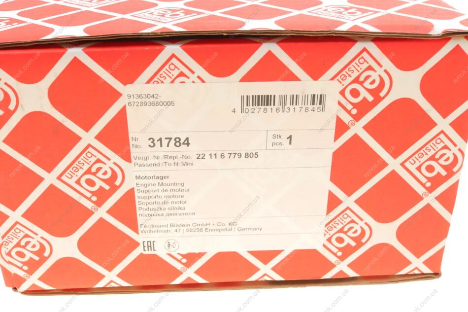 Подушка двигуна (R) Mini Cooper 1.6-2.0 07-16 FEBI BILSTEIN 31784 (22116779805)