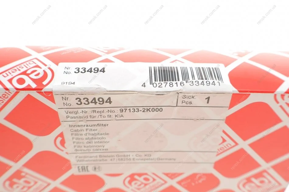 Фільтр салону Kia Soul 1.6/1.6D 09- FEBI BILSTEIN 33494 (971332K000)