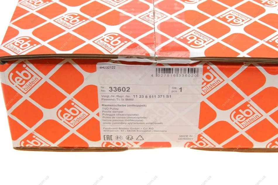 Шків валу колінчатого FEBI BILSTEIN 33602 (11237786611S1, 11237786611, 11237793593)