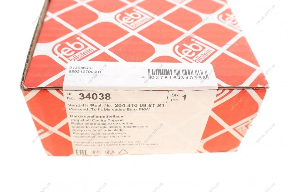 Опора валу привідного з вмонтованим кульковим підшипником FEBI BILSTEIN 34038 (a2044100981, A2044100981S1, A2044101181)