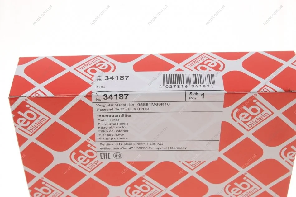 Фільтр салону Nissan Pixo 1.0 09-/Alto 1.0 09- FEBI BILSTEIN 34187 (278914A00C, 95861M68K10)