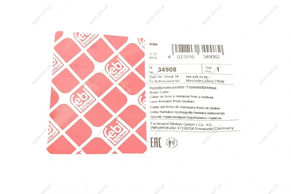 Трос ручного гальма FEBI BILSTEIN 34908 (a1644202385, A1644200385, 1644202385)