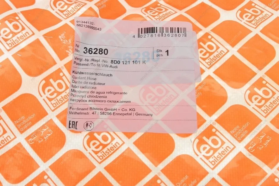 Патрубок радіатора (верхній) Audi A4/A6/VW Passat 1.6-2.8 TDI 94-08 FEBI BILSTEIN 36280 (8D0121251C, 8D0121251E, 8D0121251K)