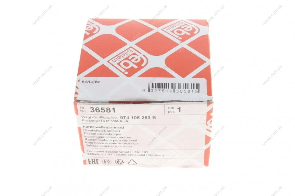 Шестерня колінвалу VW T4 2.4D/LT/T4 2.5TDI 98-/Crafter 2.5TDI 06- FEBI BILSTEIN 36581 (074105019E, 074105021, 23105021A)