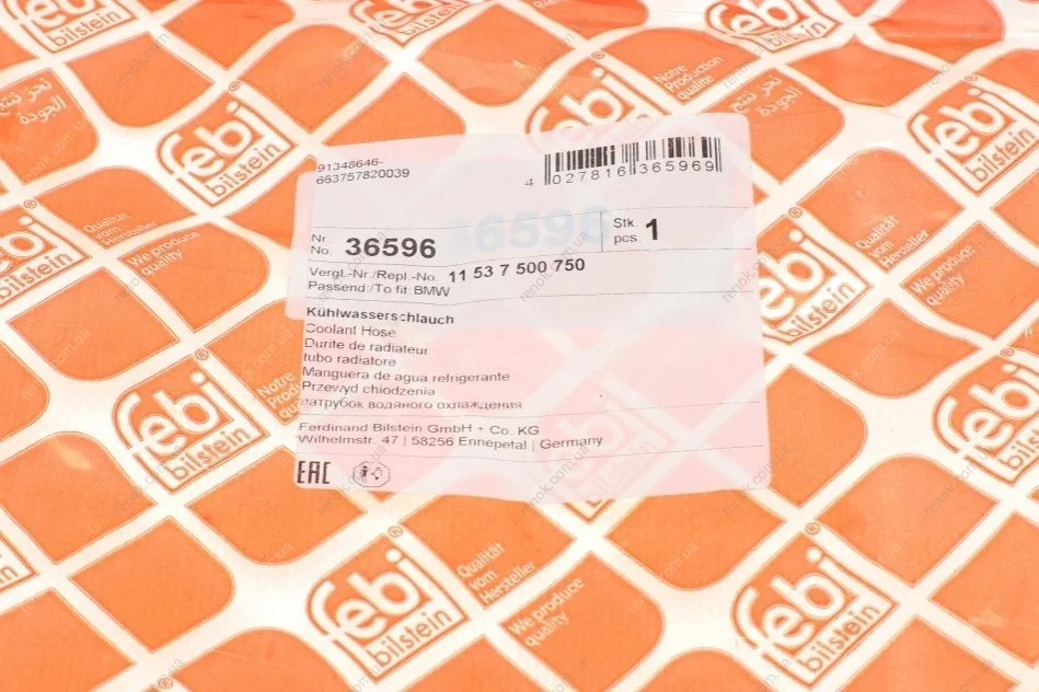 Патрубок радіатора BMW X5 (E53) 4.4i/4.6is 00-03 FEBI BILSTEIN 36596 (11537500750, 11531439121)