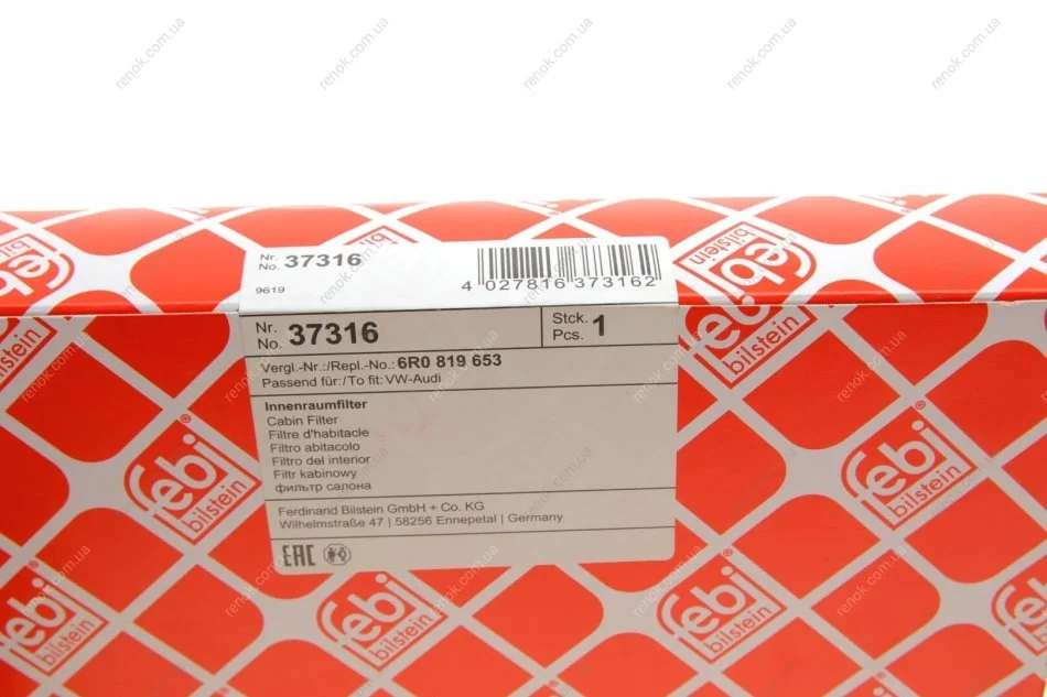 Змінний фільтруючий елемент повітряного фільтра салону FEBI BILSTEIN 37316 (jzw819653f)