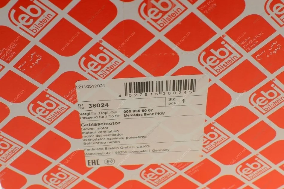 Моторчик пічки MB Sprinter/VW Crafter 06- FEBI BILSTEIN 38024 (0008356007, A0008356007, 2E0819987)