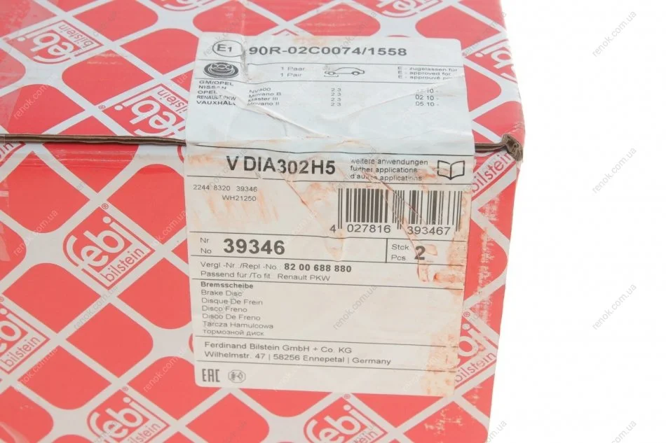 Диск гальмівний (передній) Renault Master 10- (302x28) FEBI BILSTEIN 39346 (4020600Q2C, 7420831494, 7420924728)