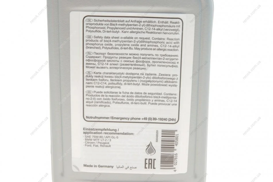 Специфікація: 75W-90 HC LS, API - GL5 LS, API - GL5, MIL-L 2105D, API - GL4