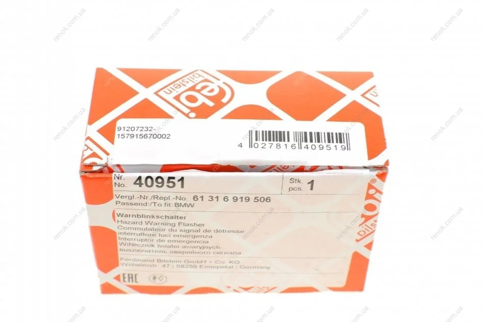 Кнопка аварійної сигналізації BMW 5 (E60/E61)/6 (E63/E64)/X1 (E83)/X5 (E70)/X6 (E71) 03-15 FEBI BILSTEIN 40951 (61316919506)