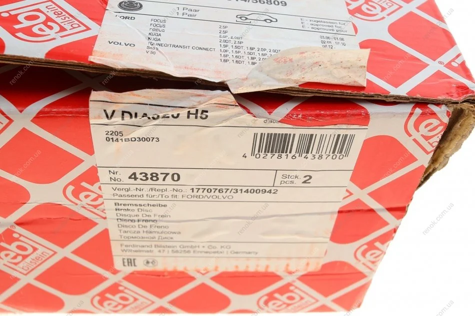 Диск гальмівний (передній) Ford Focus/ Kuga II 07-/Connect 13- (320x25) (з покриттям) (вентильований) FEBI BILSTEIN 43870 (1368548, 1384290, 1677434)