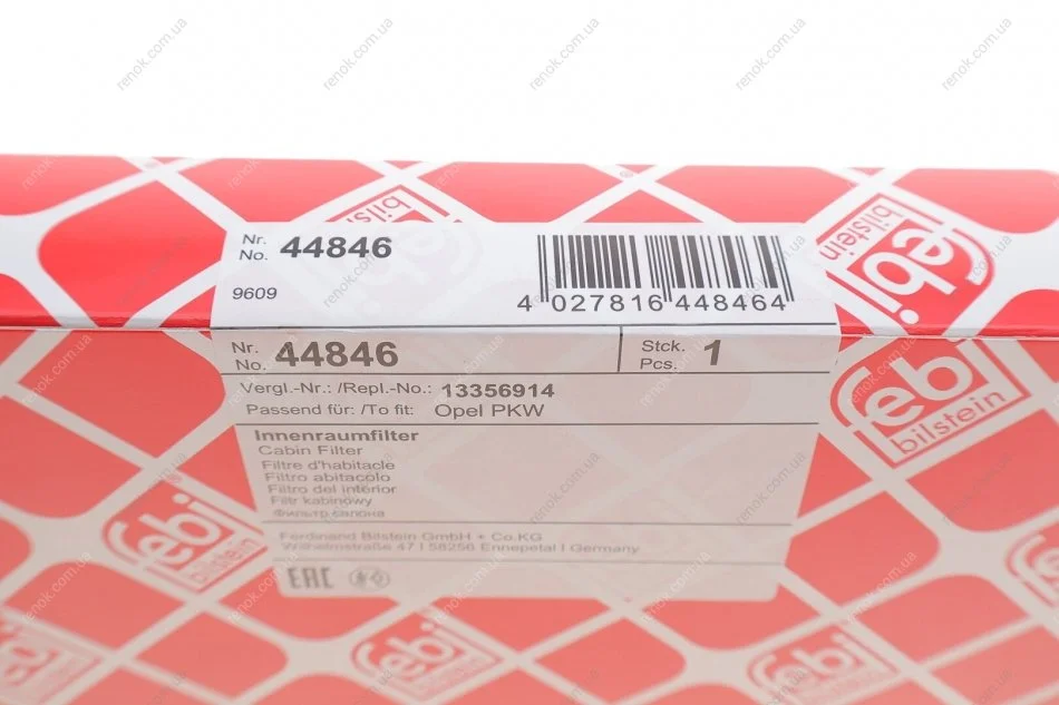 Фільтр салону Opel Astra K/Insignia B 15- (вугільний) FEBI BILSTEIN 44846 (01808020, 13356914, 1808020)