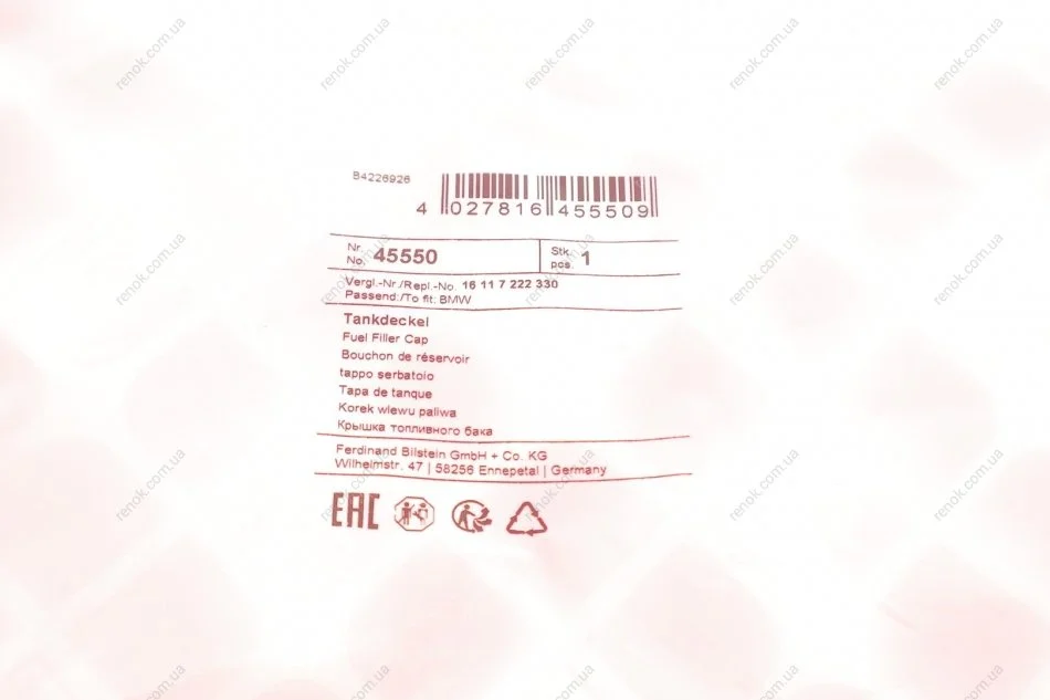 Кришка(вливної горловини бака) FEBI BILSTEIN 45550 (16111184373, 16111184731, 16116754490)