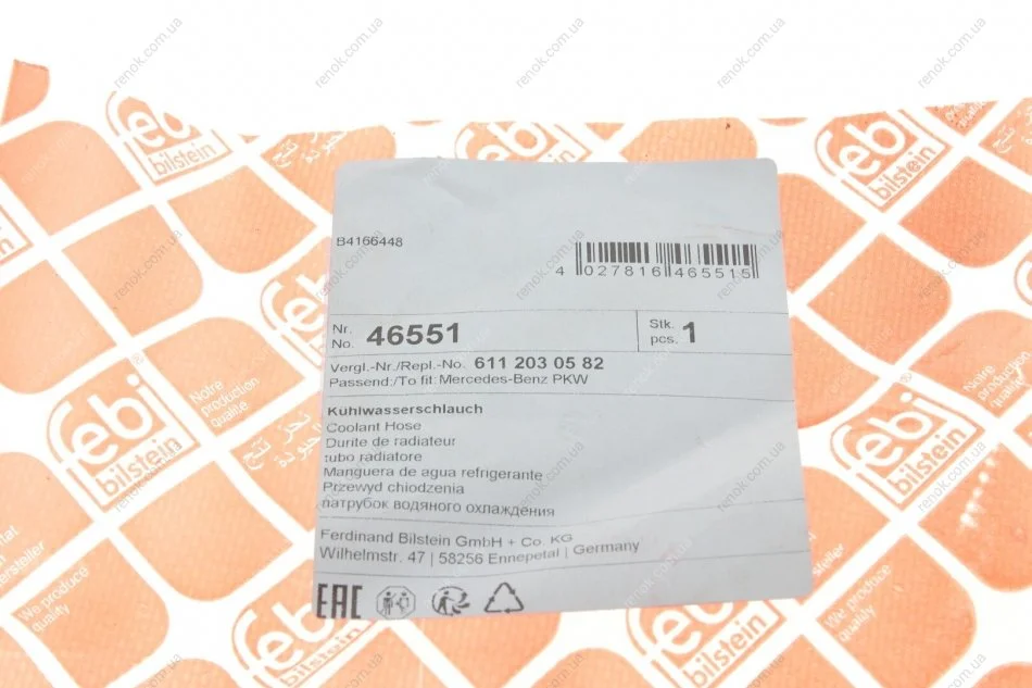 Патрубок радіатора MB Sprinter/Vito CDI 99-06 (теплообмінника) FEBI BILSTEIN 46551 (a6112032782, A6112030582, 05103986AA)