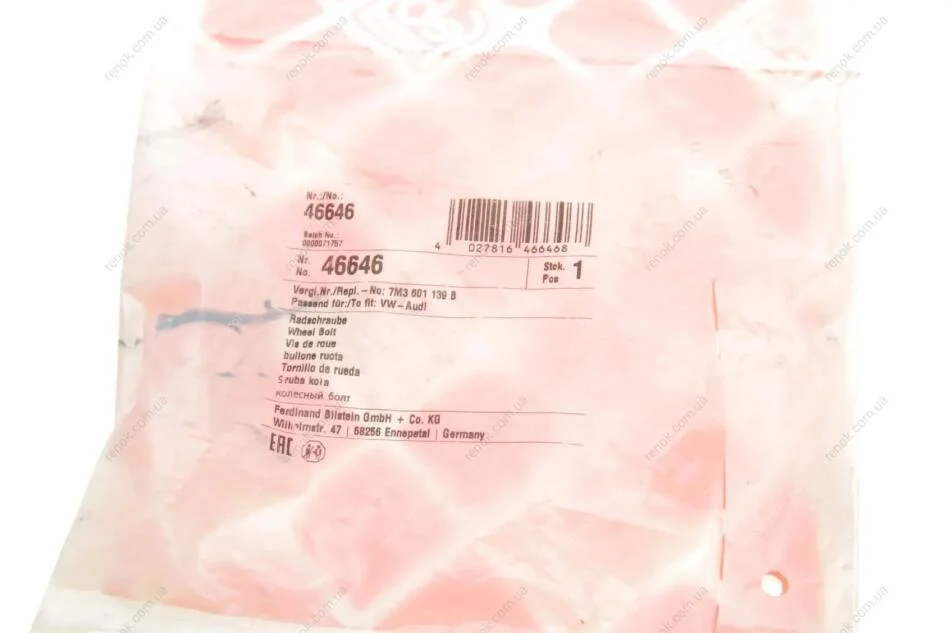 Болт Кріплення колеса FEBI BILSTEIN 46646 (1126877, 7M3601139B, YM211K013AB)
